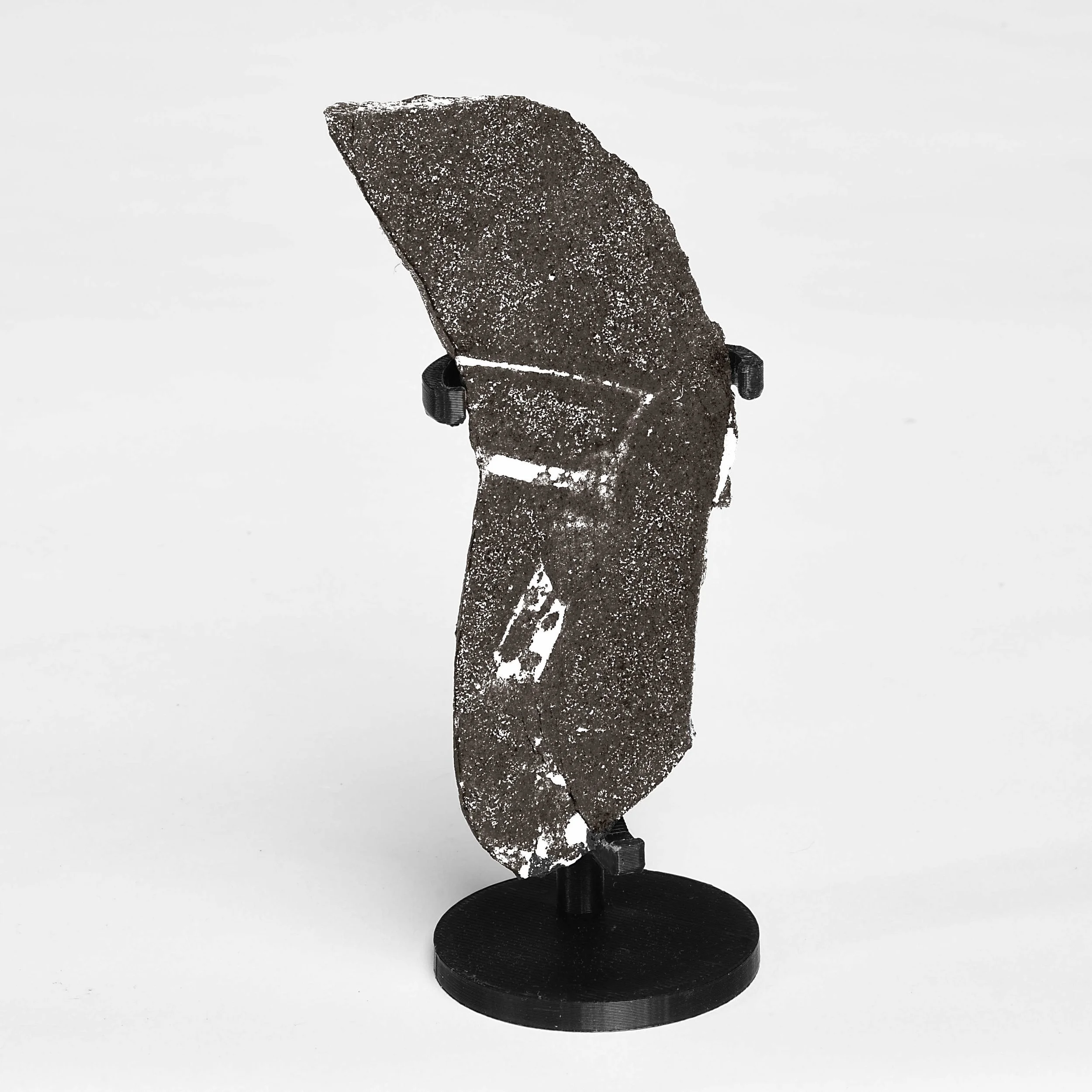 On January 28, 2021, southern Sumatra experienced repeated loud booms that shook the homes of residents and were of sufficient intensity to be picked up by Indonesia’s Tsunami Early Warning System. A 2.2 kg meteorite which subsequently crashed through a roof was submerged in water in the belief the water now possessed healing properties. Only five stones were recovered from this event whose TKW is a mere 6.6 kilograms. Punngar is the only H7-melt breccia in the literature. To this author, there is not another meteorite that looks quite like this. The lead-hued matrix hosts zones of metallic grains that evoke an enstatite as well as bands of metal which hint Portales Valley’s morphology. This elongated endpiece from the main mass is one of only three known endpieces of Punngar known to exist; two of the five stones from the Punngar event remain uncut. For the more sophisticated collector, this is an exemplary specimen of this singularly unusual meteorite.